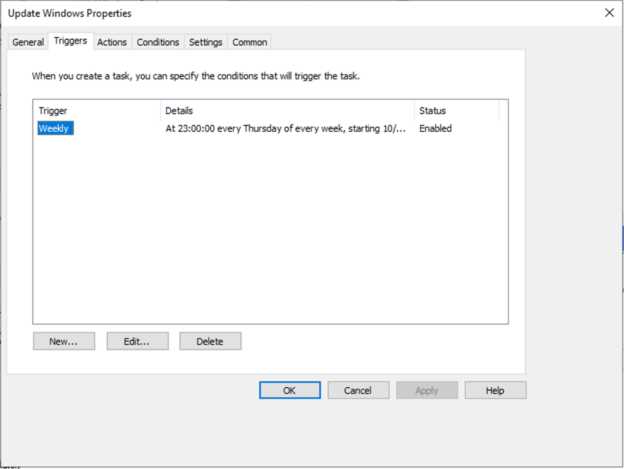 -ExecutionPolicy Bypass -command "& C:PowerShellScriptsinstallWindowsUpdateModule.ps1" The remaining tabs I’ve left blank. Once you’ve set this it’s good to go. When the script has run a few times depending on your own set schedule you can check to see if it’s created a logs folder with a log file within to read.
